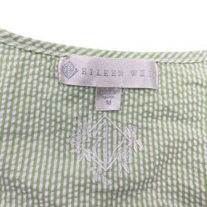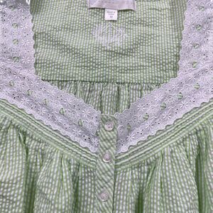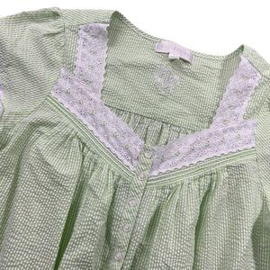 Eileen West Medium Full Button Green Strip Lace Cap Sleeve Nightgown