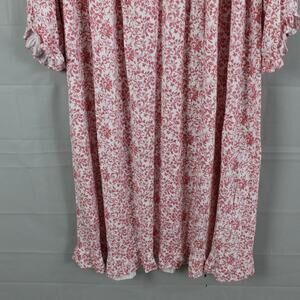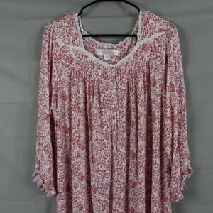 Eileen West Medium White Red Floral Lace Maxi Long Sleeve Nightgown Cottagecore
