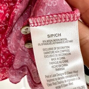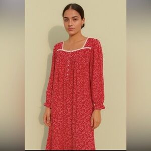 Eileen West Modal Long Sleeve RUFFLED Trim Nightgown Small S Red Floral Pajamas