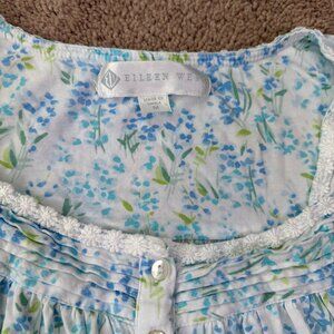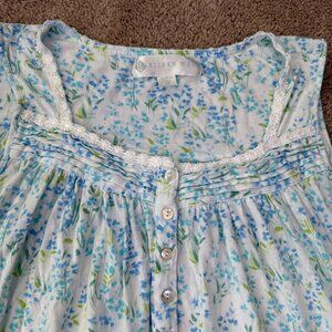 Eileen West Nightgown Womens M Blue Ballet Sleeveless Floral Daisy Midi Granny