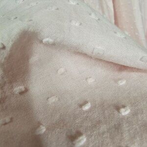 Elegant cotton nightgown featuring delicate Swiss dot texture and intricate lace neckline, offering lightweight comfort and feminine design. Soft blush pink hue adds a subtle, romantic touch to sleepwear.