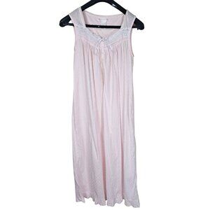 Eileen West Pink Sleeveless Cotton Nightgown S Swiss Dot Ruffle Lace Cottagecore