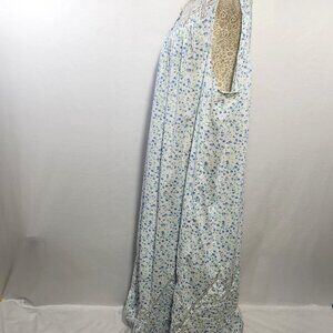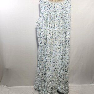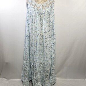 Eileen West SIZE 2X Blue Floral Print Pintuck Ruffle Lace Sleeveless Tortoise Shell Button Lawn Gown & Robe Cover-Up Set Cotton Lounge Eveningwear Peasant Lightweight Breathable Cottage Core Gently Pre-Owned Excellent Condition Reasonable Offers Welcome