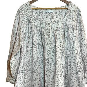 Eileen West Size XL 100% Cotton Rose Bud Flannel Maxi Length Night Gown