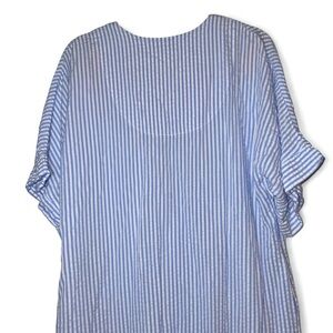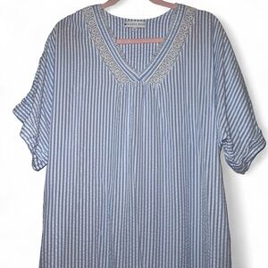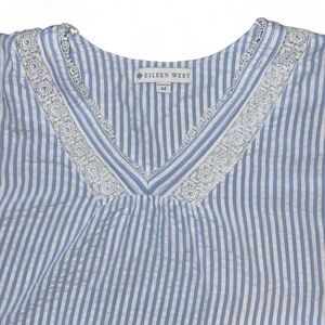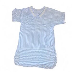 Eileen West Striped Seersucker Caftan Nightgown Blue White Pockets Size Medium