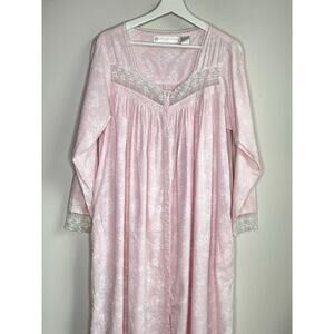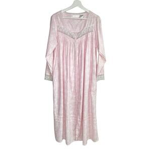 Eileen West Vintage Cotton Long Sleeve Lace Trim Button Front Nightgown Pink S