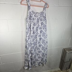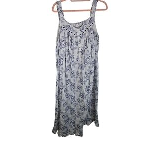 Eileen West White Blue Floral Embroidered Cottagecore Romantic Nightgown