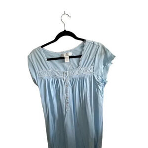Eileen West Women's BlueCotton Sleeveless Button Front Midi Nigh Gown Size Large