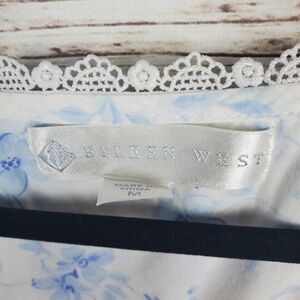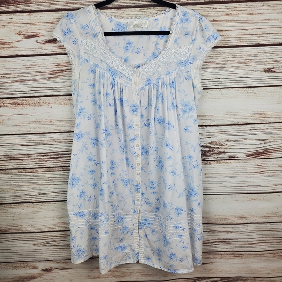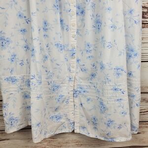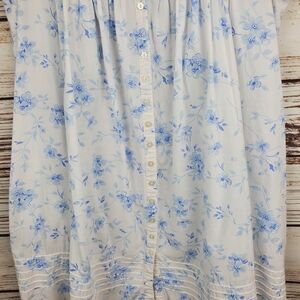 Eileen West Womens Medium White w/ Blue Flowers Cotton Cap Sleeve Short Gown