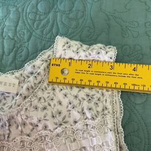 -Features: White nightgown with white lace details around the collar, light grey floral print, flower buttons