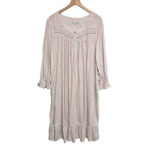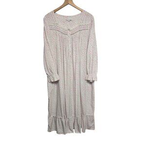Eileen West Womens XL Pink Wildflower Nightgown Rayon Long Sleeve Country Modest