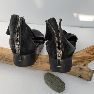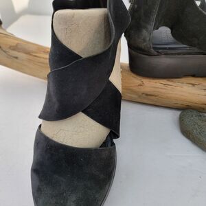 Black pebbled nubuck leather ballet style criss cross comfort shoes. Preloved condition. All sections of interest as well any known flaws have been documented in the photos and noted as thoroughly as possible. if there are no known flaws, none will be noted. Please feel free to ask any questions before purchase 🙂.
