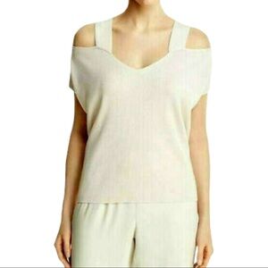 Eileen fisher Cream Ivory knit sweater cold shoulder Tencel. X-Small