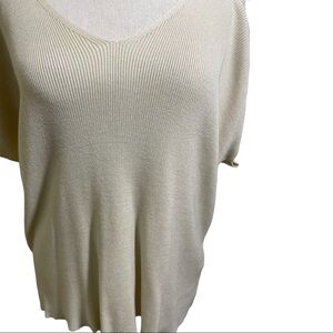 Eileen Fisher knit open shoulder tencel lyocell cream color ribbed pattern. Size X-Small