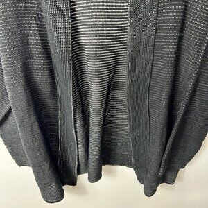 Excellent condition Elevate your wardrobe with this stunning Eileen Fisher cardigan. Crafted from a luxurious blend of silk, linen, and cotton, this long-sleeve cardigan features an open design with a tight-knit pattern. The classic black color and solid style make it a versatile piece for travel, casual outings, workwear, or business meetings. This cardigan is a must-have for any fashion-conscious woman. Italian designer Eileen Fisher has created a timeless piece that is perfect for the winter, fall, and spring seasons. The cardigan is available in a women's size L and is easy to care for with hand wash only. Add this elegant sweater to your collection today!