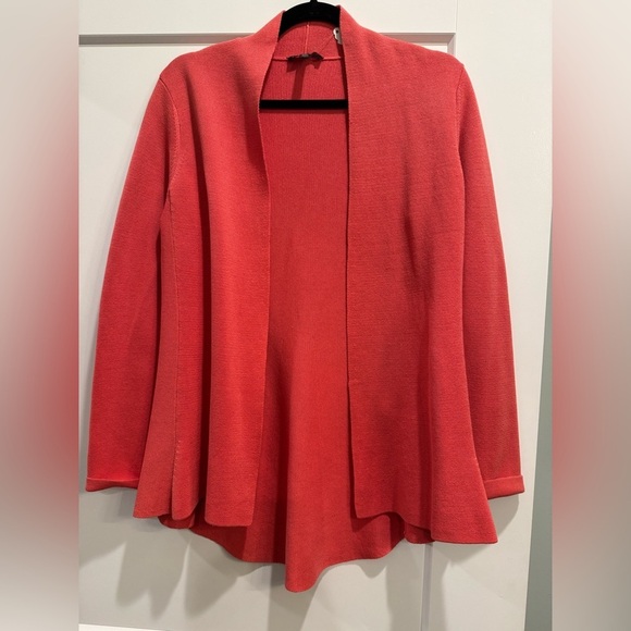 Eileen fisher coral silk/cotton blend open front cardigan with fold over cuffs