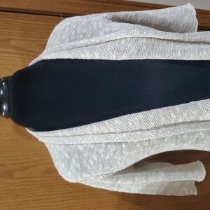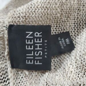 excellent condition no issues size Petite medium linen blend open front cardigan in a nice neutral oatmeal cream color knit short sleeve by Eileen fisher