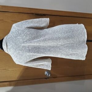 excellent condition no issues size Petite medium linen blend open front cardigan in a nice neutral oatmeal cream color knit short sleeve by Eileen fisher