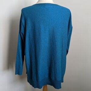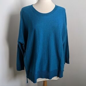 Eileen fisher teal blue oversized organic cotton sweater S lightweight