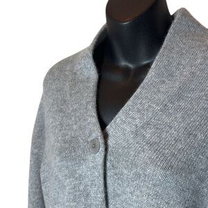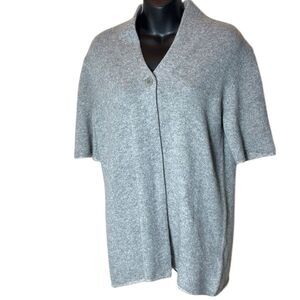 Eileen fisher women’s gray 100% cashmere short sleeve one button front cardigan