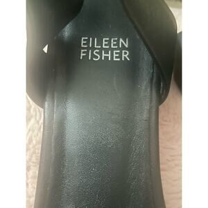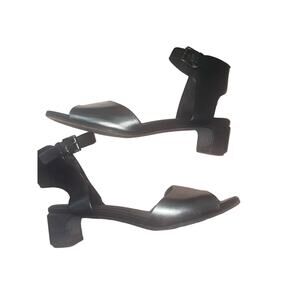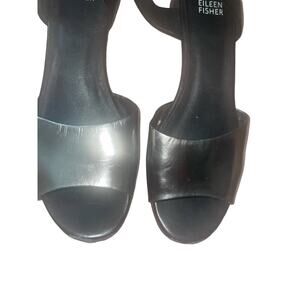 Eileen Fisher Vero Cuoio Black Metallic Silver Buckle Leather Block Heel Sandal -Size 8.5