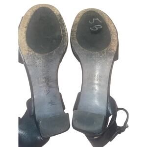 Eileen vm Fisher Vero Cuoio Black Metallic Silver Buckle Leather Sz 8.5 Sandal C