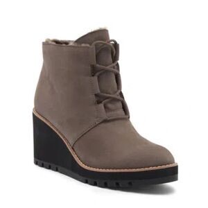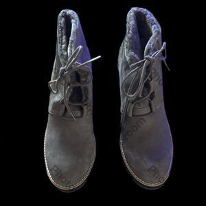 Eileen Fisher Alpine Ankle Bootie Lace Graphite Shearling Leather Size 8.5, NWOT