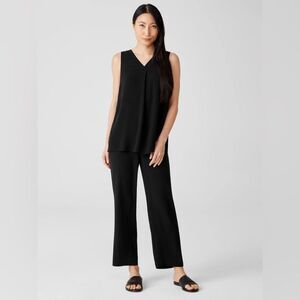 Eileen Fisher Black Silk Georgette Crepe Ankle Straight Pant NWT Size Medium