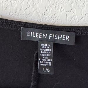 Eileen Fisher Black Stretchy Knit Tunic Top L Viscose Blend Scoop Neck Lagenlook