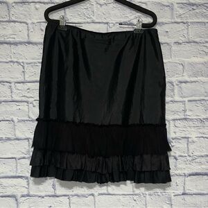 Eileen Fisher Blk Wash Silk Taffeta Ruffle Skirt