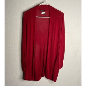 Eileen Fisher Cardigan Top Women Medium Burgundy Open Front Italian Yarn Ribbed
