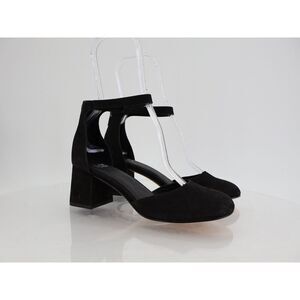 -Eileen Fisher Indi Ankle Strap Pumps Suede Black Leather Size 7 Block Heel-Condition Light sole wear, good overall condition. No rips/tears