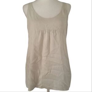 Eileen Fisher Ivory Sleeveless Relaxed Fit 100% Silk Blouse Pockets