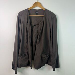Eileen Fisher Jacket XL Brown Open Front Linen Blend Lightweight Utility Pockets