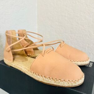 Eileen Fisher Lace-Up Leather Espadrille Sandal, Toffee Cream Pink Size 8, NWT