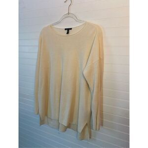 Eileen Fisher Linen Cotton Blend Knit Blouse, Size Large, New Without Tags, Excellent Condition, 68% Organic Linen, 32% Organic Cotton, Versatile Piece that can be styled for the beach, a day going out etc.