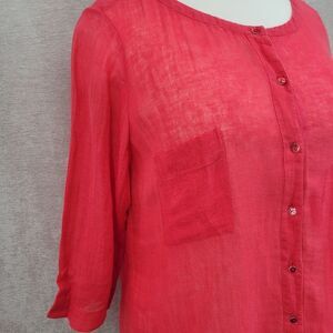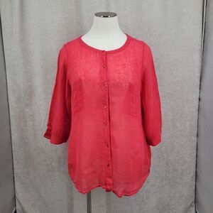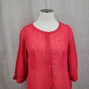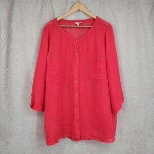 Eileen Fisher Linen Women's Plus Size Coral Button Up Top Tunic