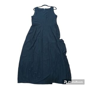 Eileen Fisher Maxi Dress Womens M Black Sleeveless Minimalist Italian Fabric