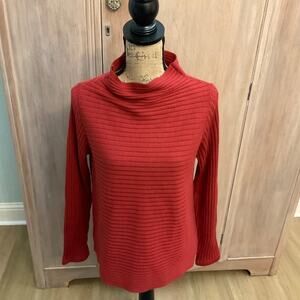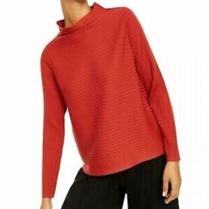 Eileen Fisher Merino Funnel Neck Sweater Sz small ribbed red orange w/ flaw