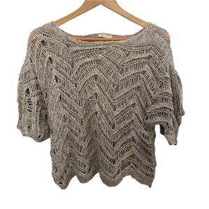 Eileen Fisher Oatmeal Wonder Scallop Crochet Sweater size PS