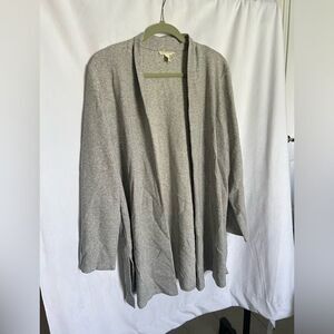Eileen Fisher Open Front Cardigan Duster Gray Organic Cotton Linen Blend size L
