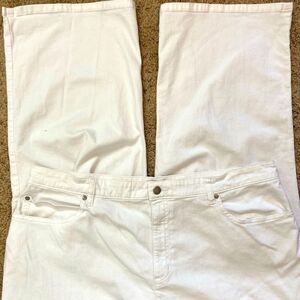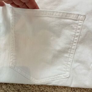 Stylish white denim jeans made of 98% organic cotton and 2%spandex. Sturdy weight perfect condition. 5 pocket style. High waist. Cropped length, wider leg. Minimalist chic. Like new no flaws. Waist is 21” flat, rise is 14” high!, inseam is 25”. Top to bottom 39”. Very bottom of leg 12” across nice and wider.