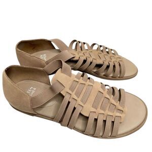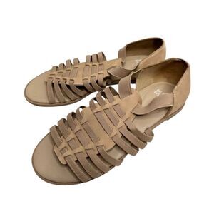 Eileen Fisher Sandals Size 7 Tan Rato Casual Elastic Gladiator Flats Open Toe