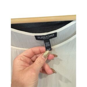 Eileen Fisher Sheer Silk Georgette Crepe Scoop Neck Dress Asymmetric Hem SP