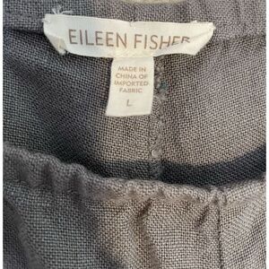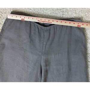 Eileen Fisher Size L 100% Linen Wide-Leg Pants Cropped Gray Elastic Waist Large