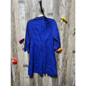 Eileen Fisher Women's Blue Linen 3/4 Sleeve Button Down Collared Dress