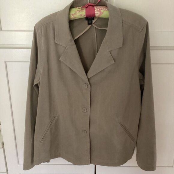 Eileen Fisher Womens Khaki Jacket Sz L 3 Button Stretch Lightweight