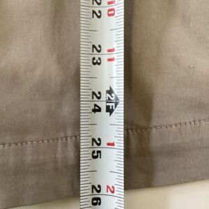 In good condition no issues. 60% cotton, 30% Tencel, 2% Spandex. 2 faux front pockets, 3 front closure buttons, 2 arm hem button.