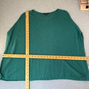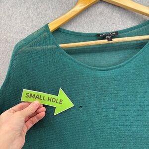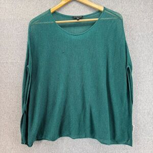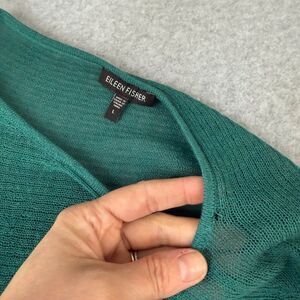 Eileen Fisher Womens Large Wool Knit Short Sleeve Sweater Top Green Drape FLAWED