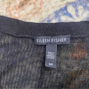 Eileen Fisher Women's Sweater Cardigan Black Linen Lightweight Knit Button Down